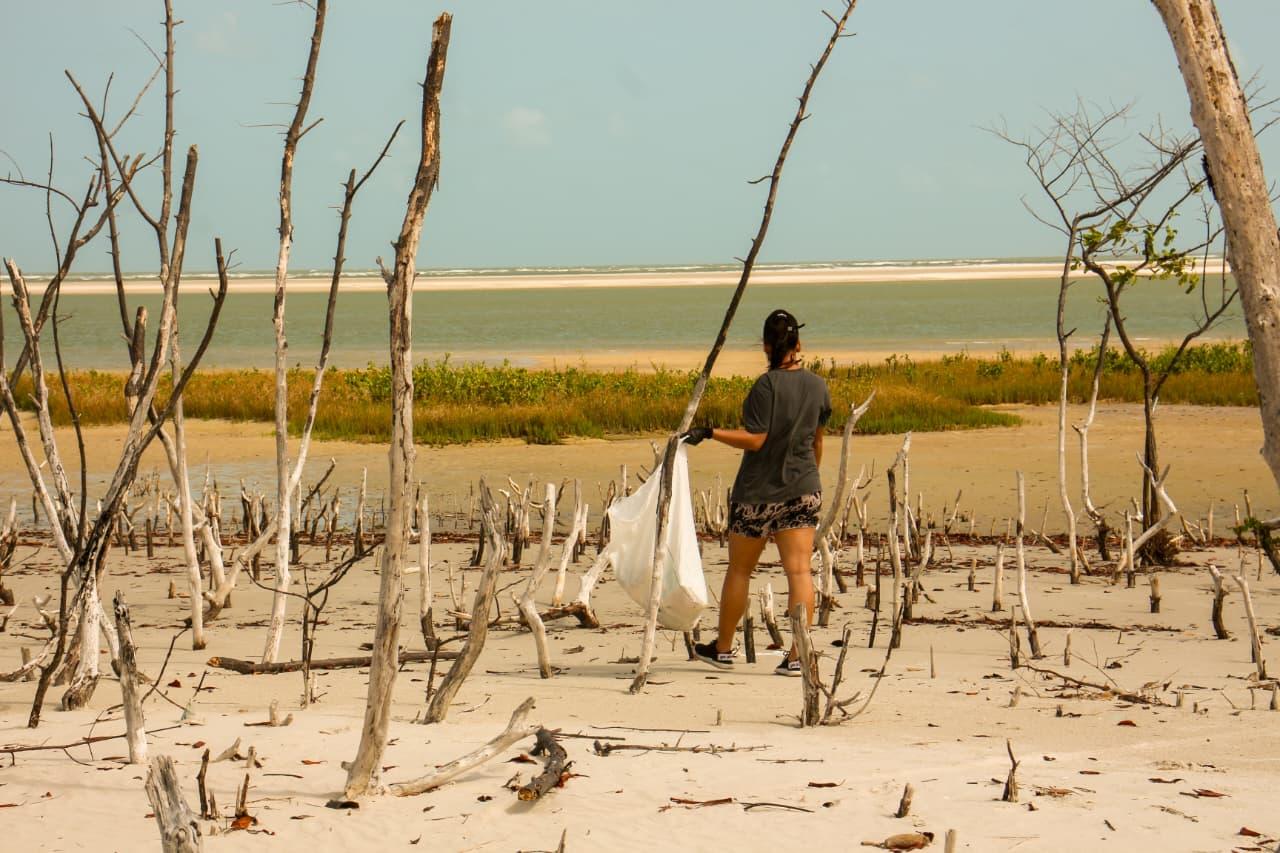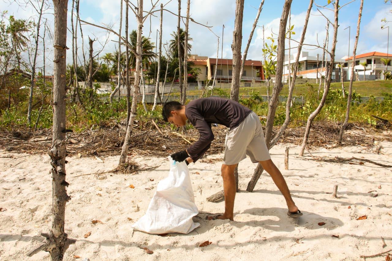 Ação de limpeza na praia do Maçarico