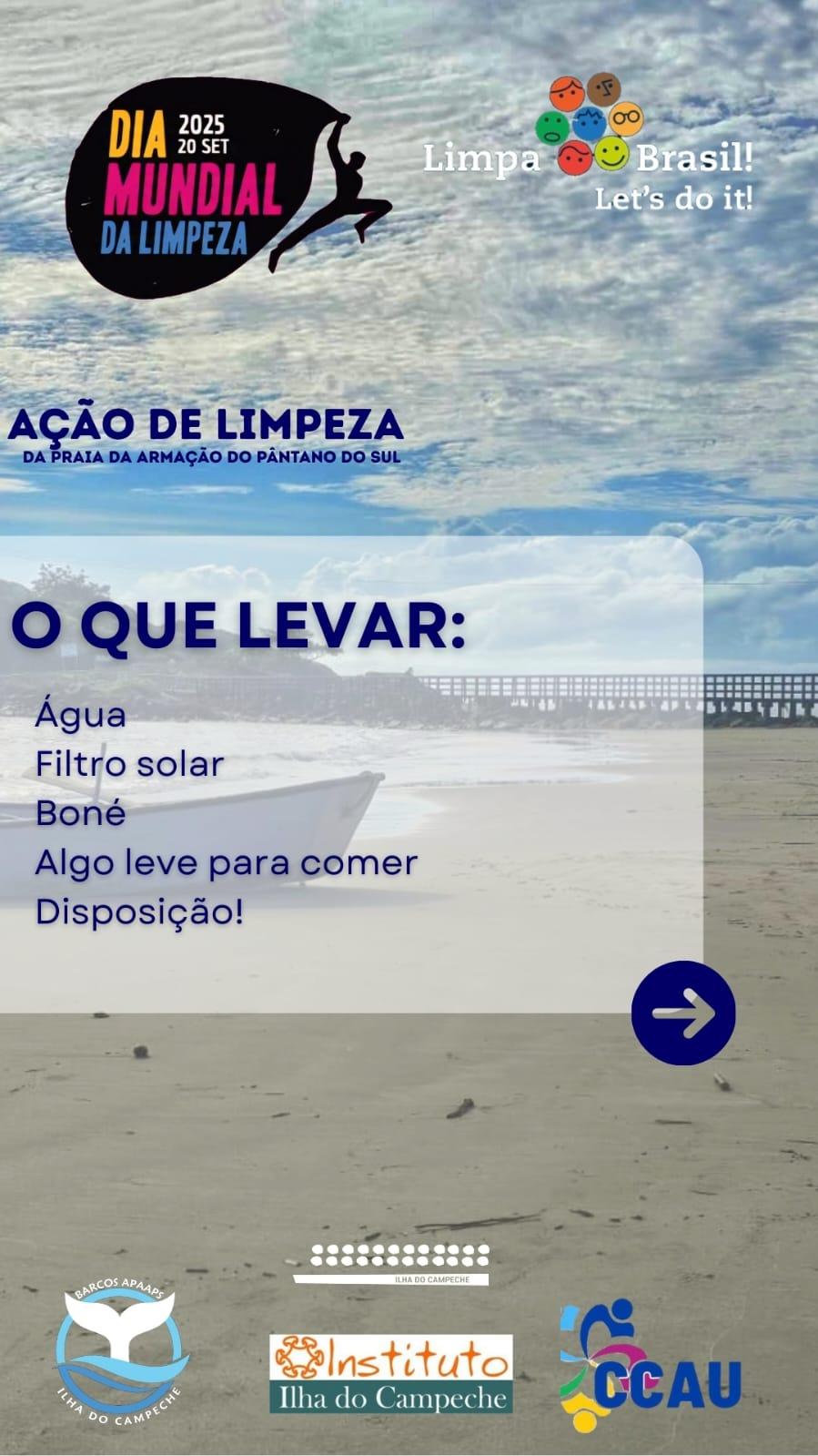 No dia 20 de setembro de 2025, às 9h, acontece uma ação especial de limpeza na praia da Armação do Pântano do Sul, em associação ao Dia Mundial da Limpeza.