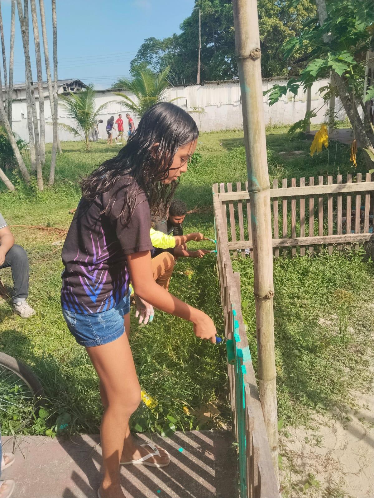 A ação Colorindo a Escola com as Cores da Amazônia é uma proposta de revitalização dos espaços escolares, com pinturas de murais nas paredes, a fim de adensar as vozes da comunidade da ilha do Mosqueiro através da arte, criando um clima mais confortável para a convivência da comunidade escolar.