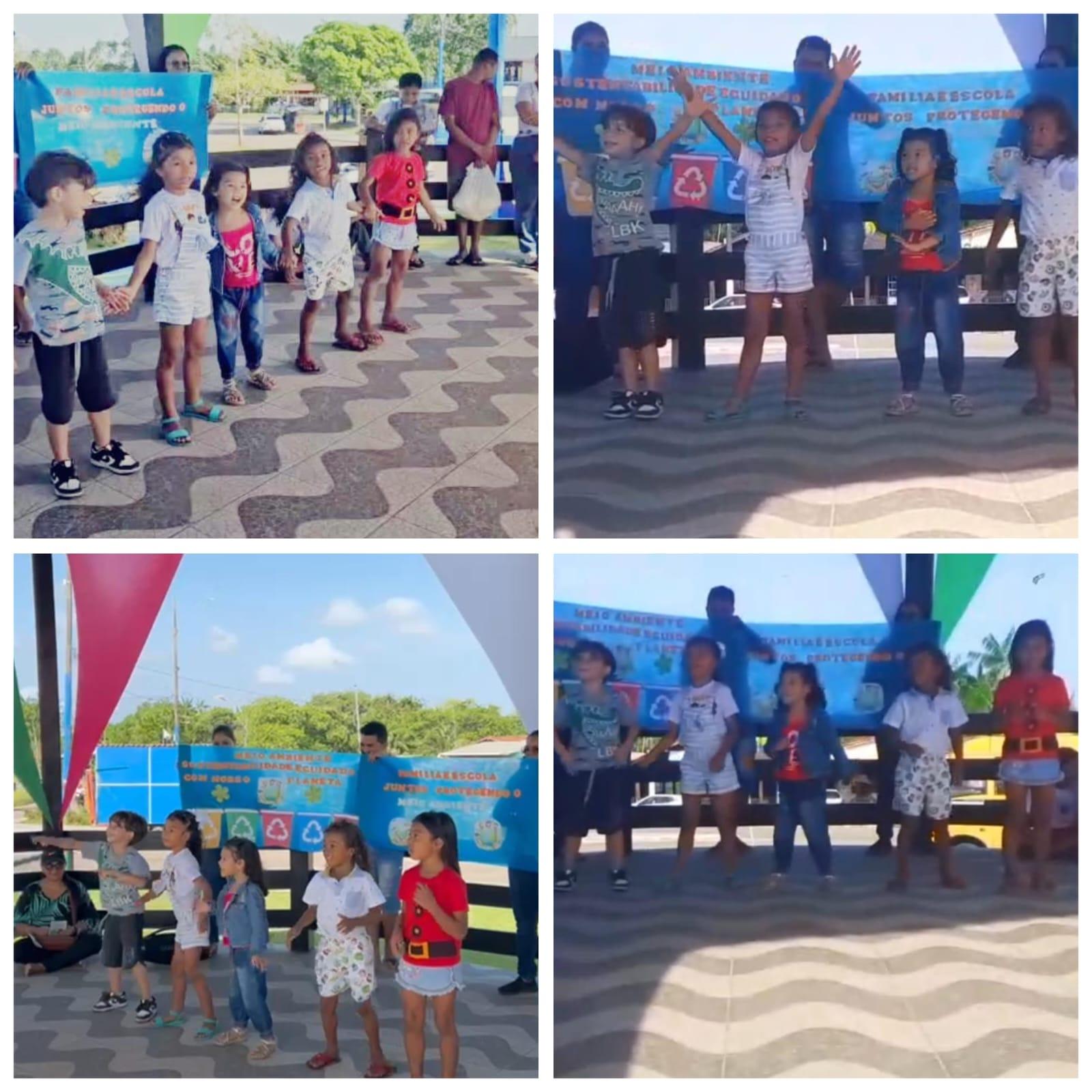 Em outro momento a socialização dos saberes em roda de conversa refletindo sobre as transformações e interferência da humanidade na natureza, partilhando as ações e atividades pedagógicas realizadas com e pelas crianças na instituição. Adiante, tivemos uma apresentação musical das crianças com a canção “Todo dia é dia de cuidar” de Natureza divertida, transmitindo ludicamente a mensagem importante da participação coletiva do trabalho humano para o cuidado e preservação do planeta.