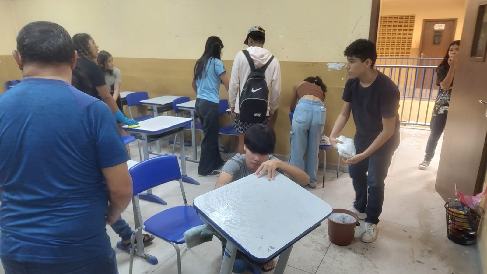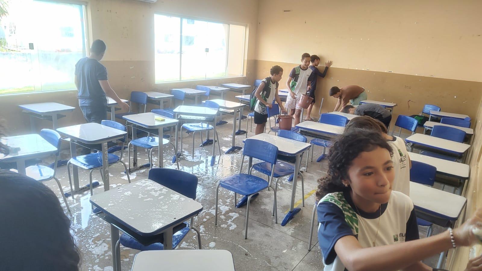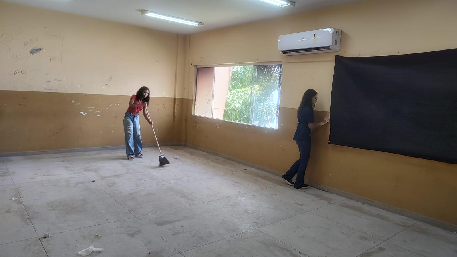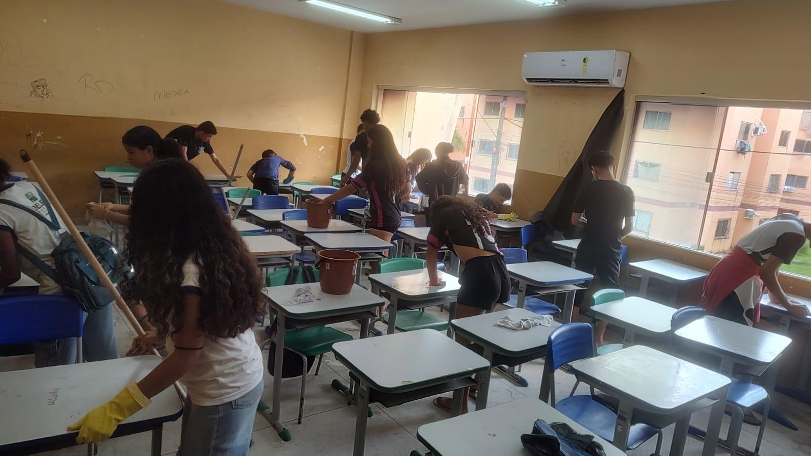 - Os alunos foram divididos em grupos de acordo com suas respectivas séries e salas de estudos. Para que, eles pudessem limpar esses ambientes. Assim, perceberam o quanto, embora sem intenção, eles não cuidam adequadamente de materiais como mesas e cadeiras, e principalmete do prédio o qual eles passam parte do dia deles.