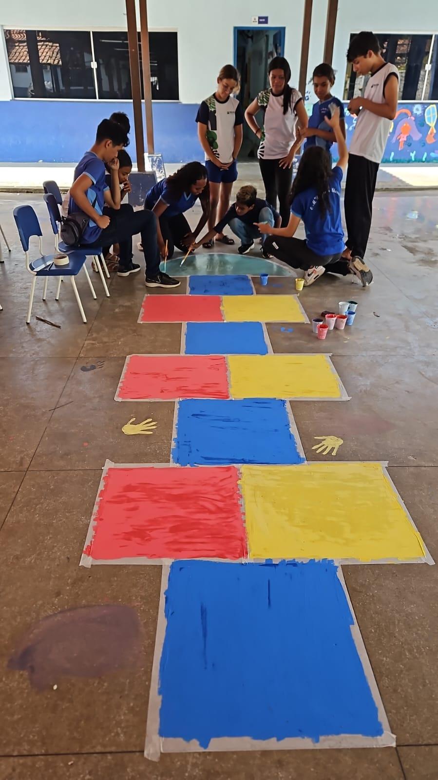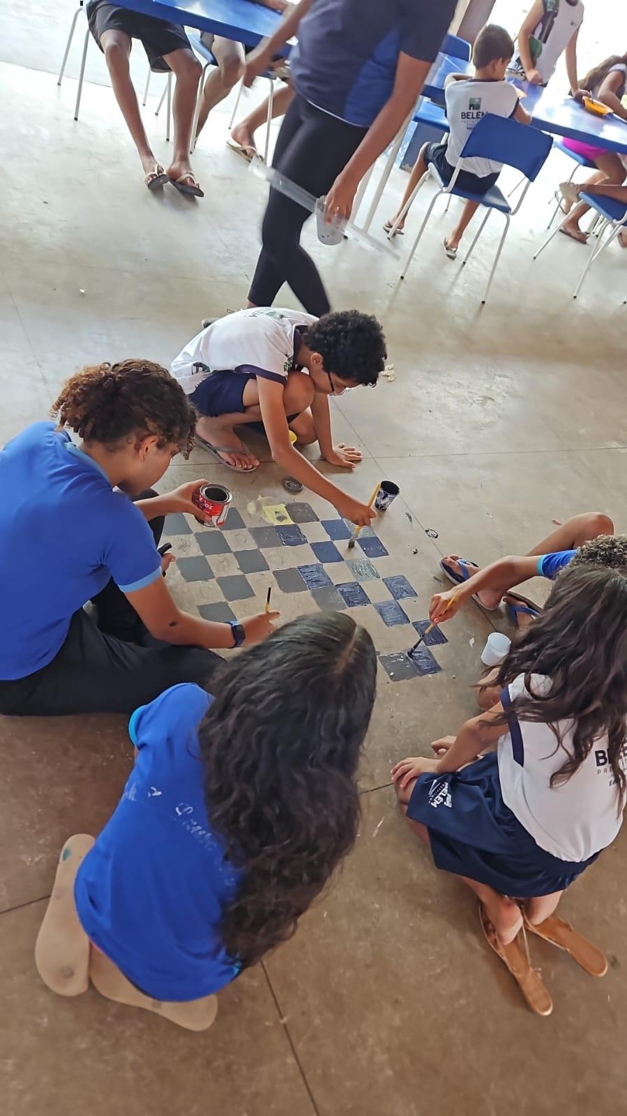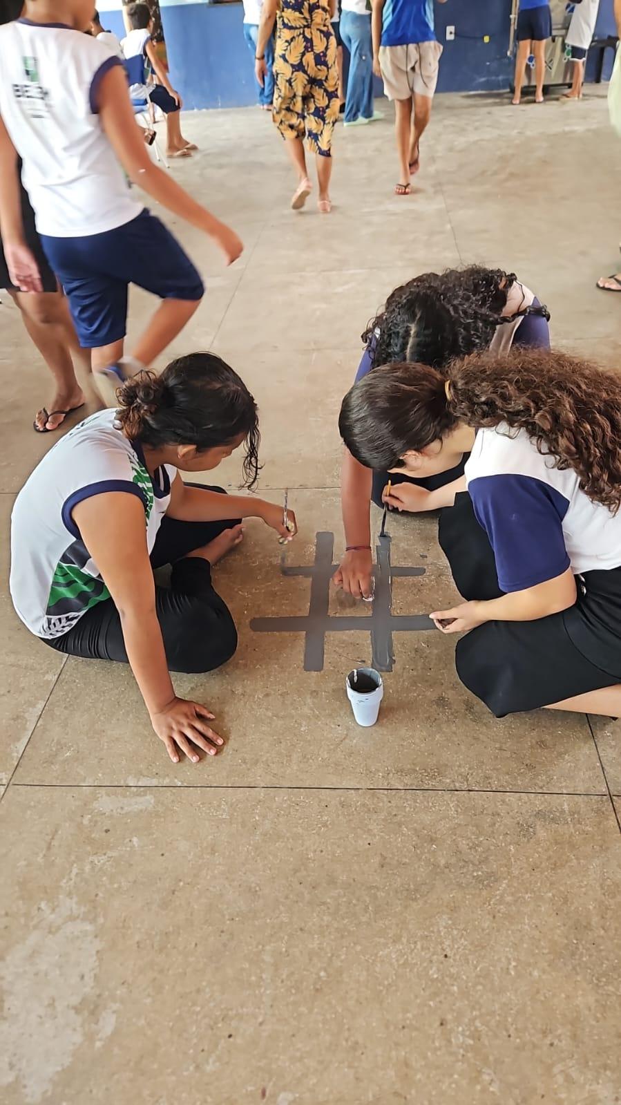 - Pintura de paredes e jogos de chão (amarelinha, dama, jogo da velha, etc.)
