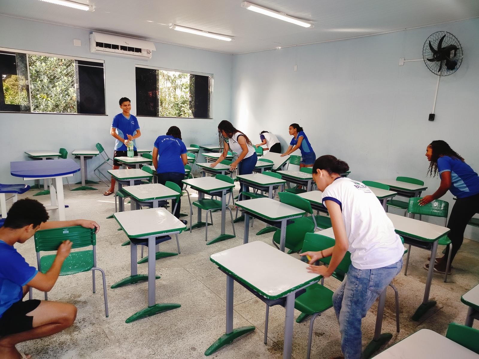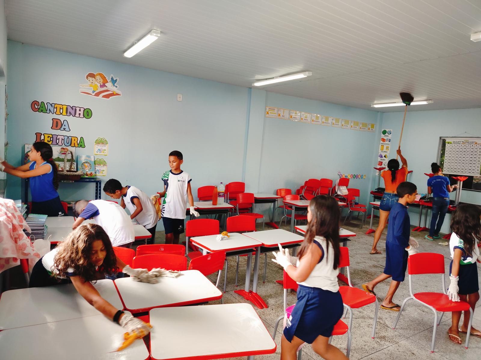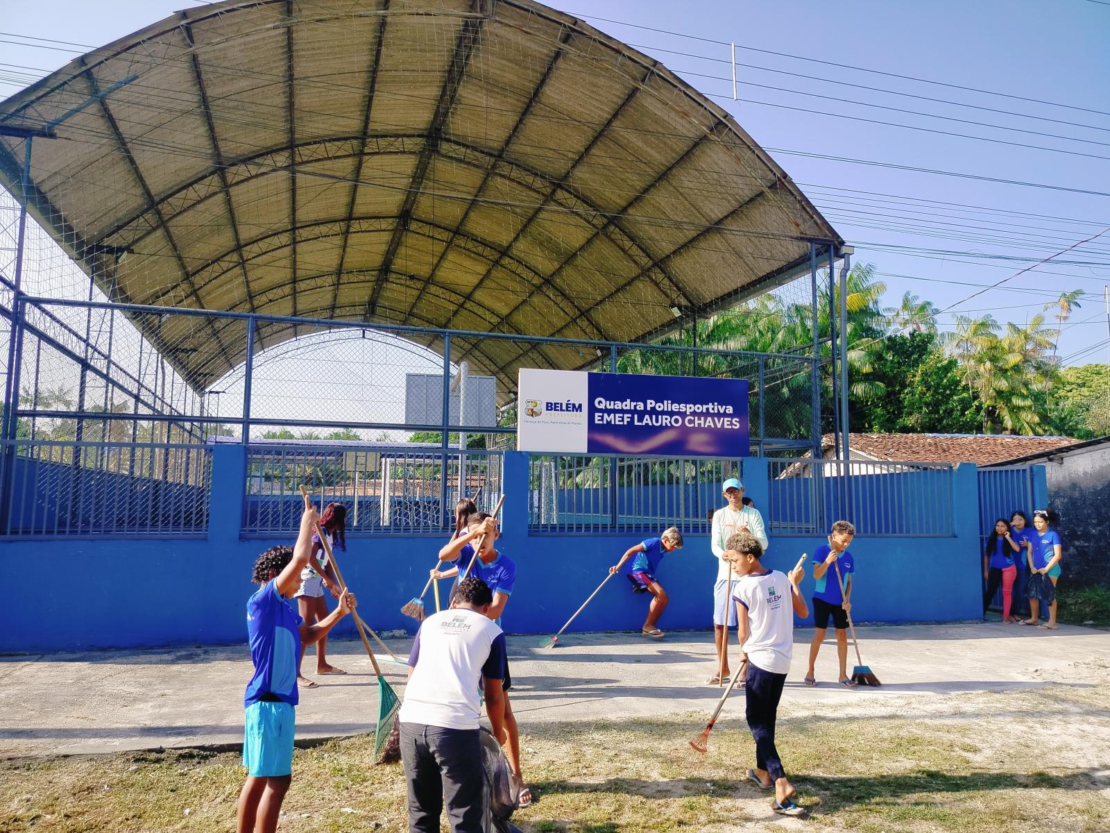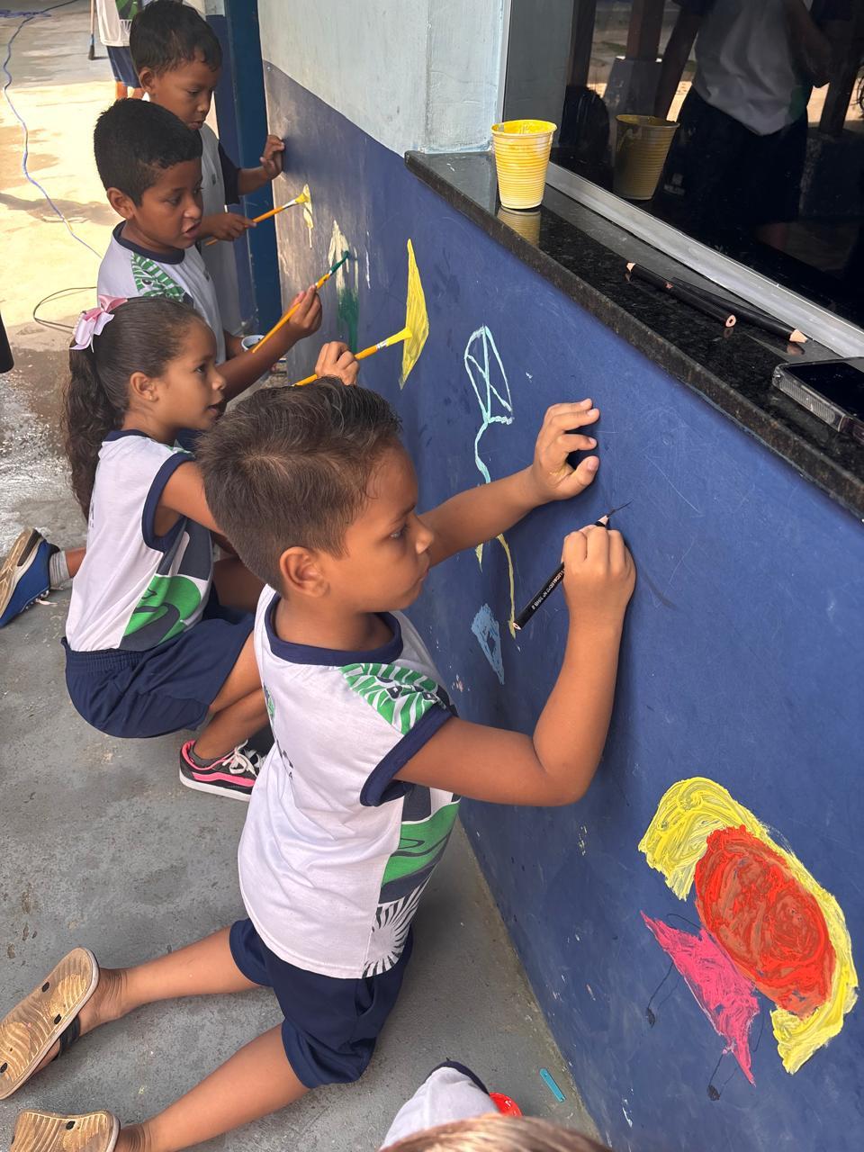 - Pintura de paredes e jogos de chão (amarelinha, dama, jogo da velha, etc.)