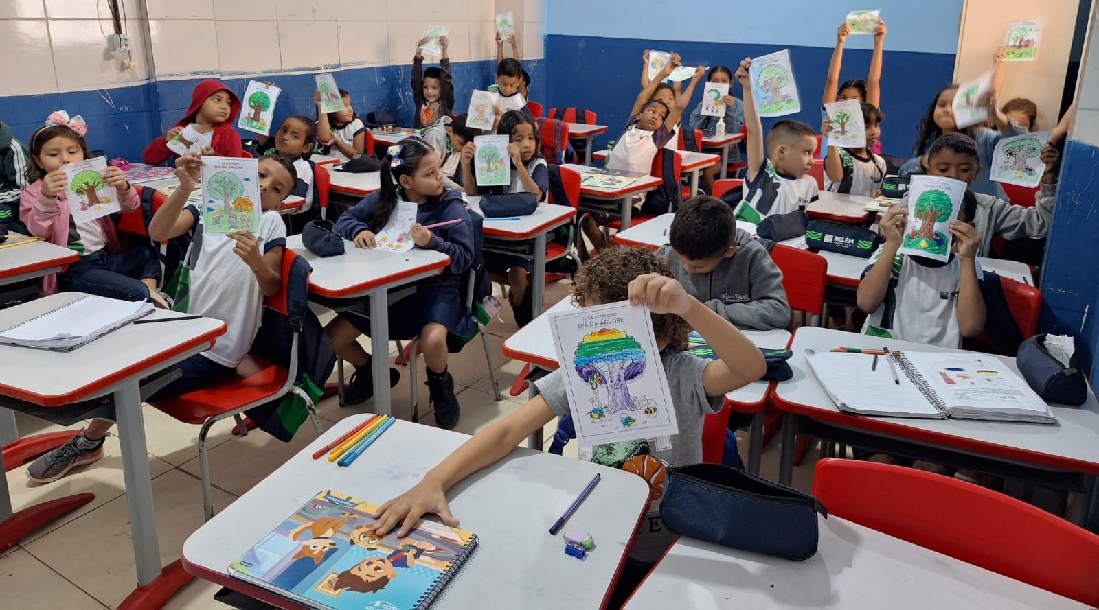 As atividades iniciaram às 7h30, com a acolhida dos alunos. Em seguida, às 8h, houve um momento de leitura do livro Não jogue seu lixo fora, acompanhado de uma roda de conversa que incentivou a reflexão sobre hábitos sustentáveis. Às 8h30, os estudantes participaram de atividades práticas relacionadas ao meio ambiente, seguidas do intervalo para merenda às 9h15.
