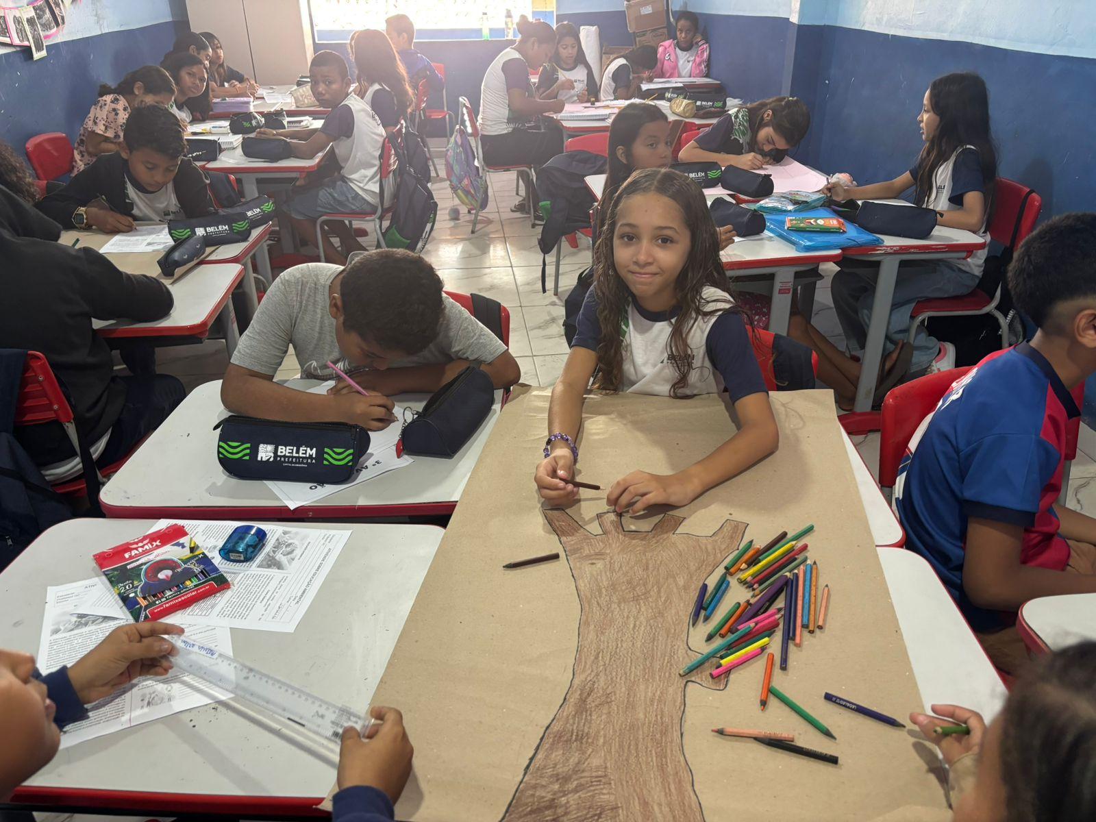 Posteriormente, às 9h30, foram exibidos vídeos educativos, como a sugestão João Ambiente, reforçando conceitos de responsabilidade socioambiental. Para encerrar, às 9h50, os alunos realizaram a criação de cartazes, expressando de forma criativa suas percepções e aprendizados sobre o tema. O encerramento das atividades ocorreu às 11h30, com a saída dos alunos.