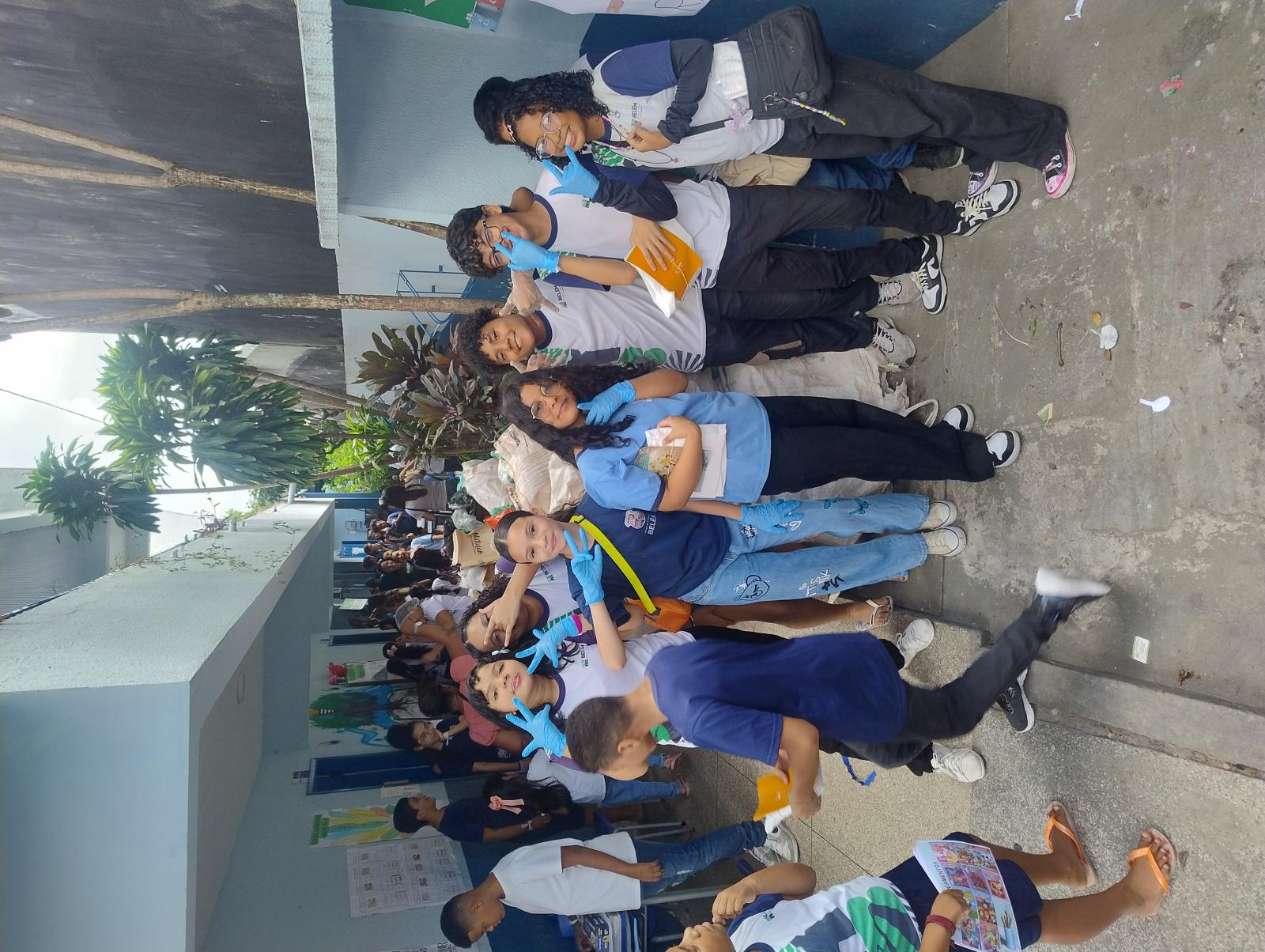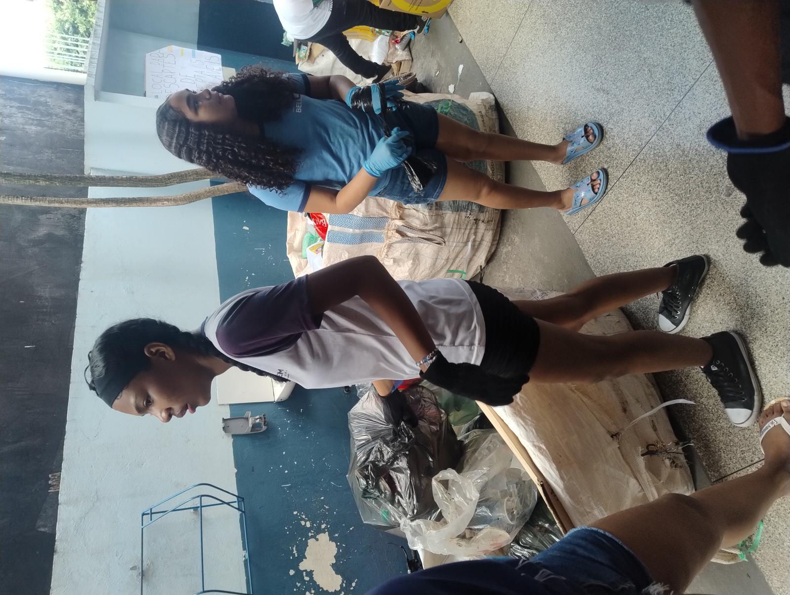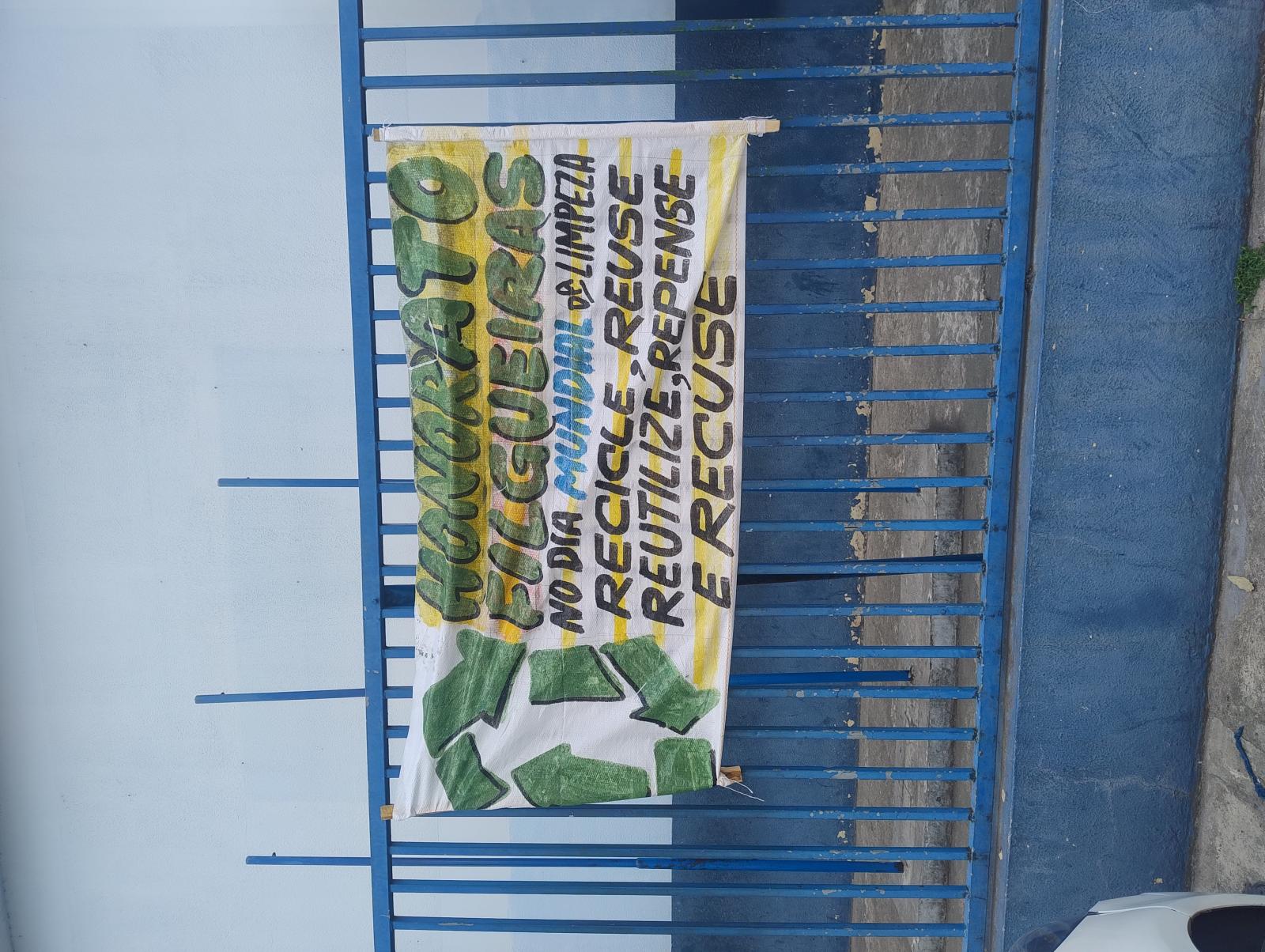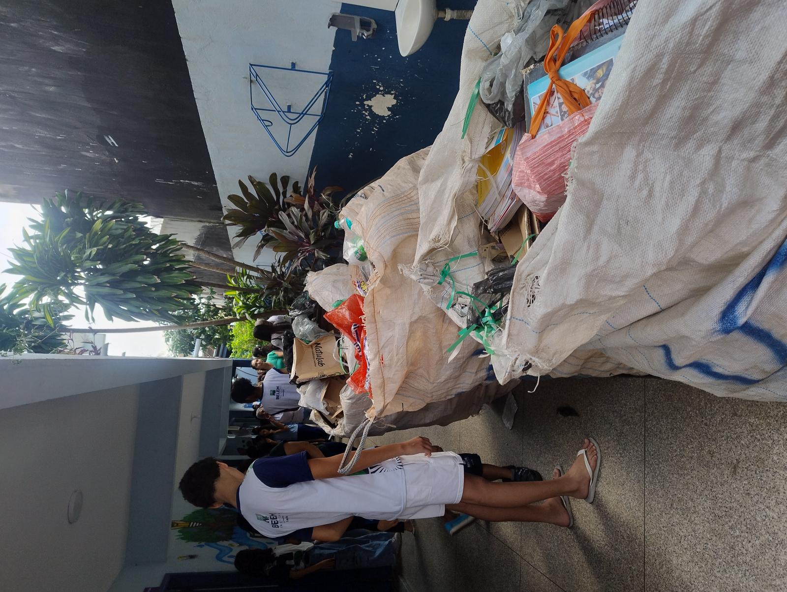 O ponto de encontro se deu na própria escola. Contamos com a colaboração da cooperativa de catadores chamada de Filhos do Sol, dos professores, direção, alunos, pais e colaboradores.