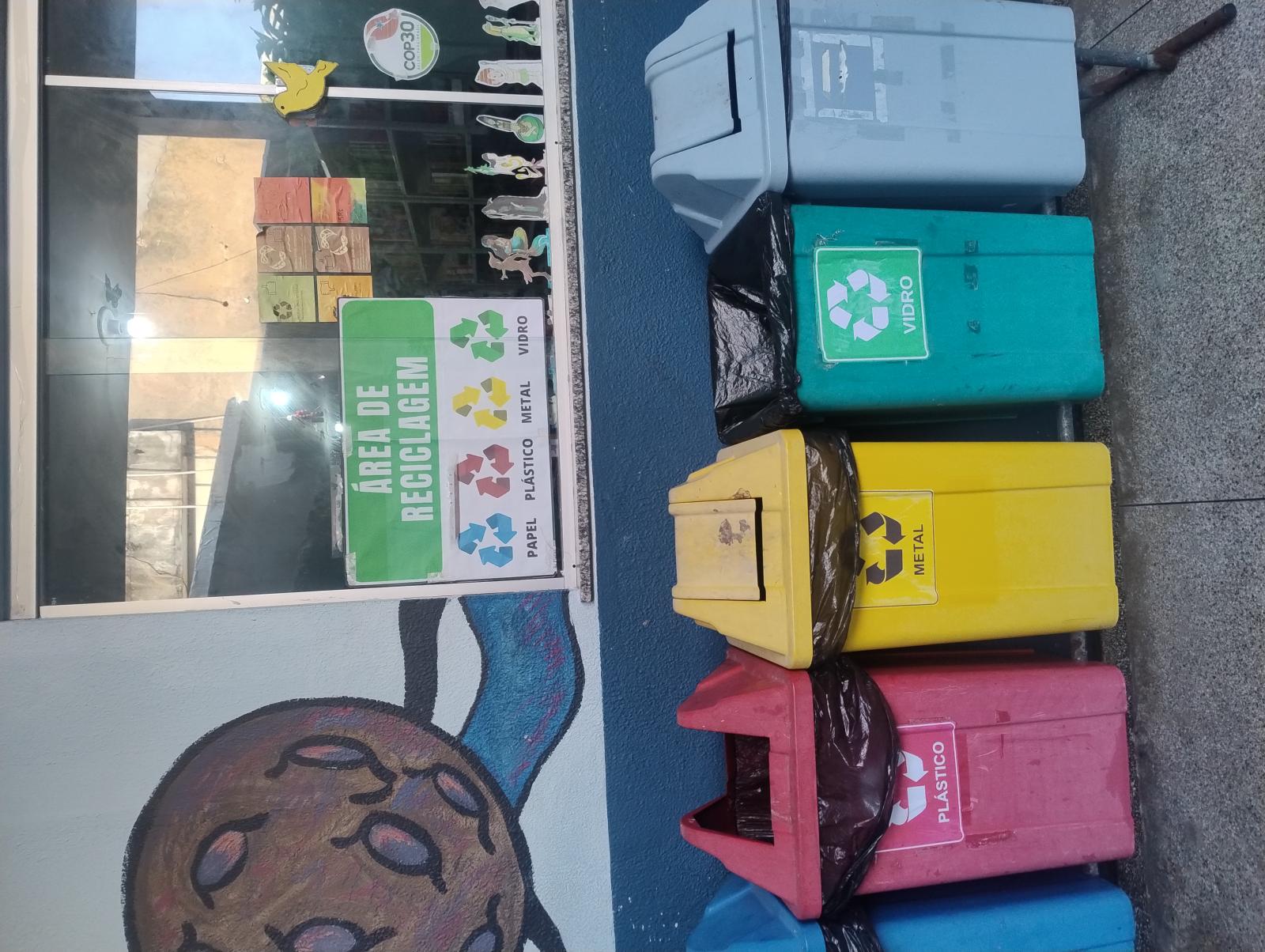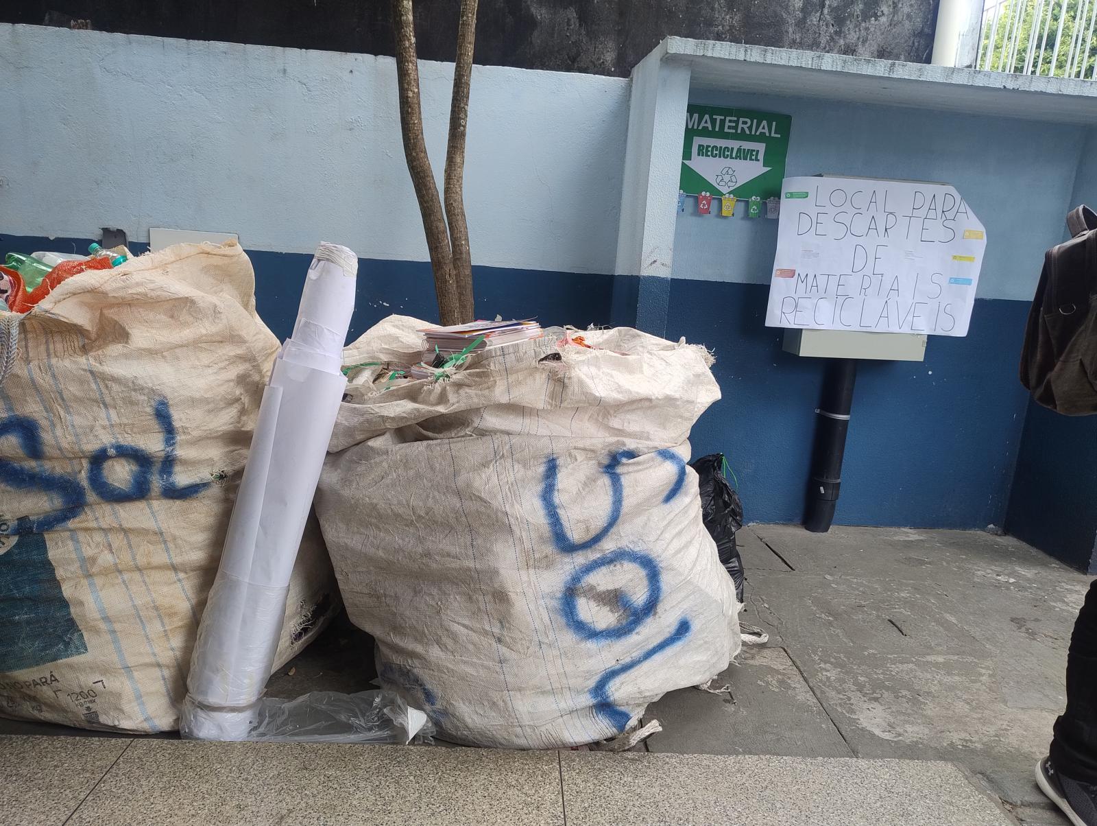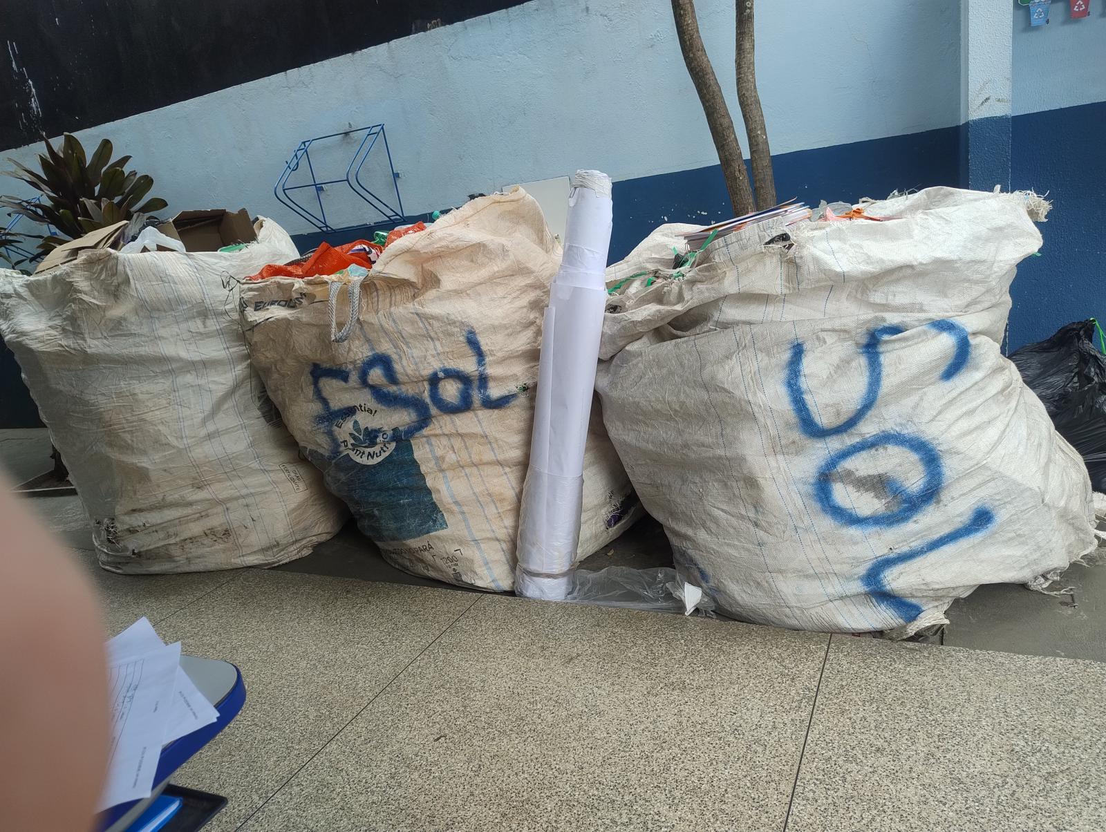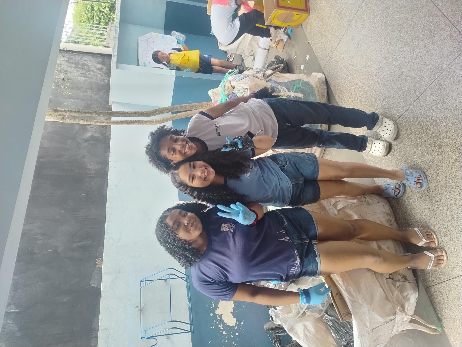 O ponto de encontro se deu na própria escola. Contamos com a colaboração da cooperativa de catadores chamada de Filhos do Sol, dos professores, direção, alunos, pais e colaboradores.