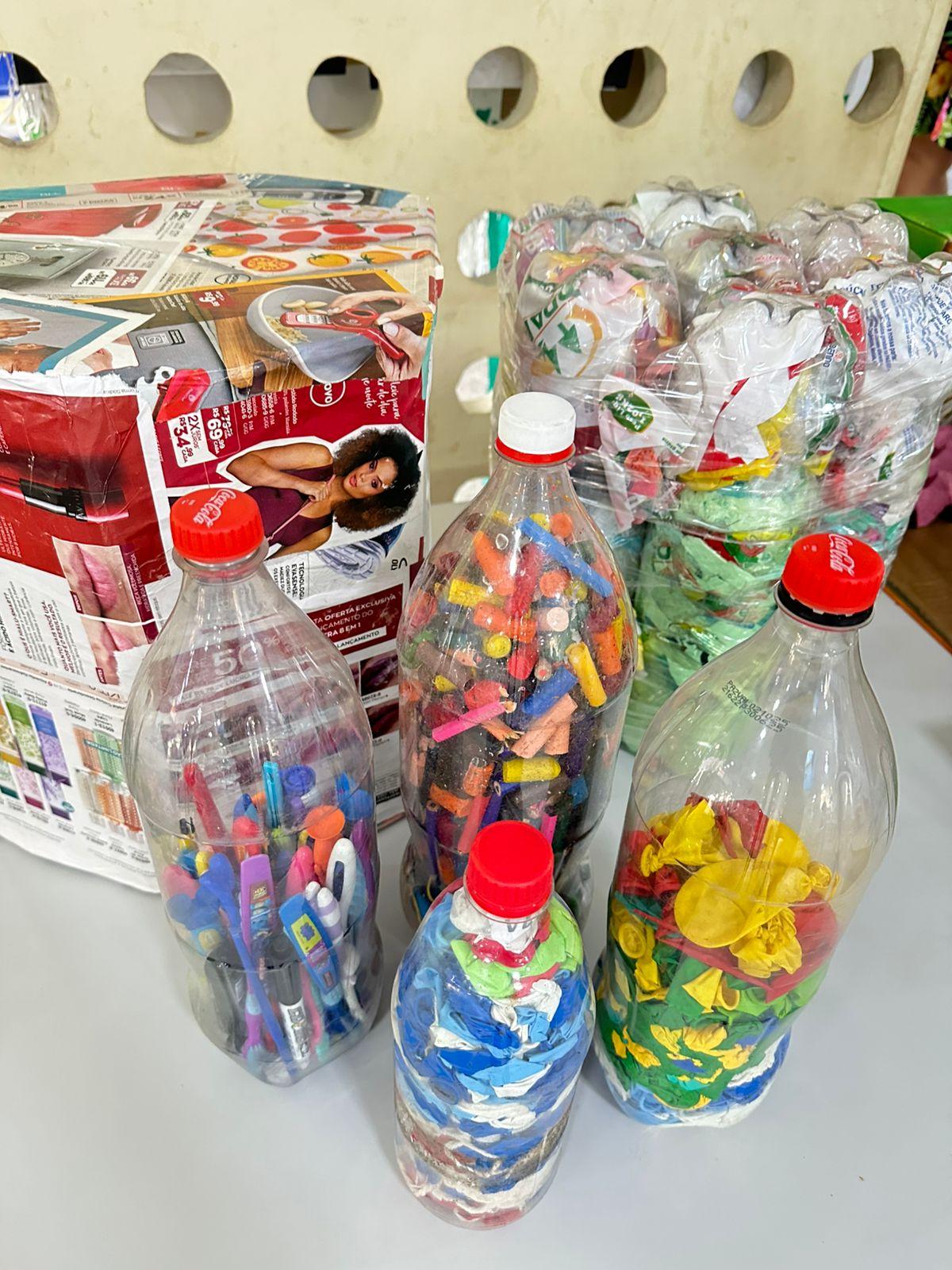 Este projeto tem como objetivo promover a consciência ambiental e o protagonismo infantil por meio da valorização das produções realizadas pelas crianças ao longo do ano letivo, utilizando materiais recicláveis como garrafas PET, tampinhas de garrafa, papelão, entre outros.