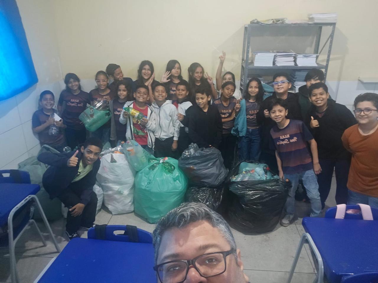 ATIVIDADE DE ARRECADAÇAO DE GARRAFAS PET PELOS ALUNO DA TURMA QUINTO ANO MANHA DA ESCOLA VERA SIMPLICIO. A ARRECAÇÃO FOI UM SUCESSO PELA GRANDE QUANTIDADE DE GARRAFAS COLETAS. ALUNOS MUITO BEM ENGAJADOS NA GINCANA. NESSE DIA OS ALUNOS FIZERAM A ORGANIZAÇÃO DAS PET E LIMPEZA.