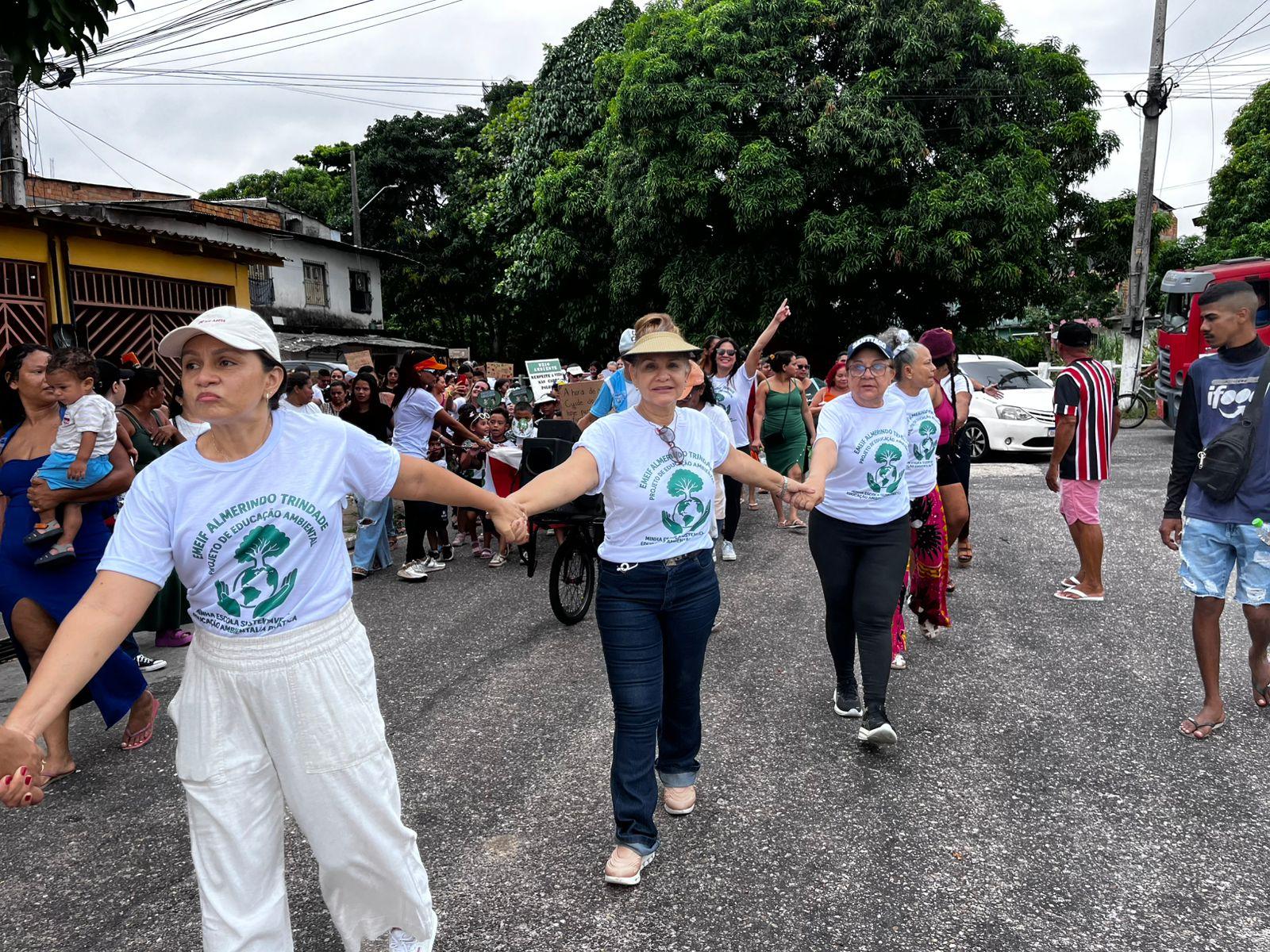 O nosso ponto de encontro foi na Escola Municipal Almerindo Trindade localizada na Rua do Acampamento 276 no Bairro da Pedreira- Belém Pará cep66.083-030