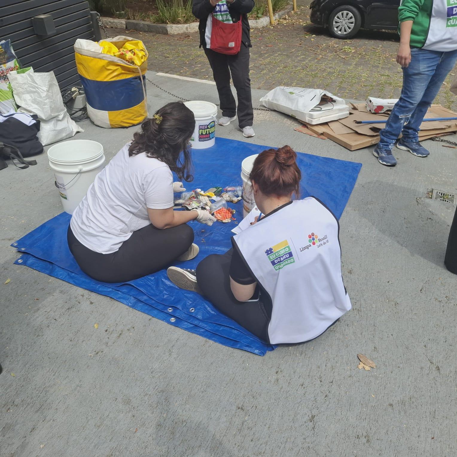 Triagem e pesagem do material coletado, com registro das principais categorias de resíduos