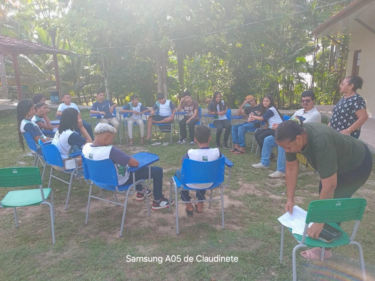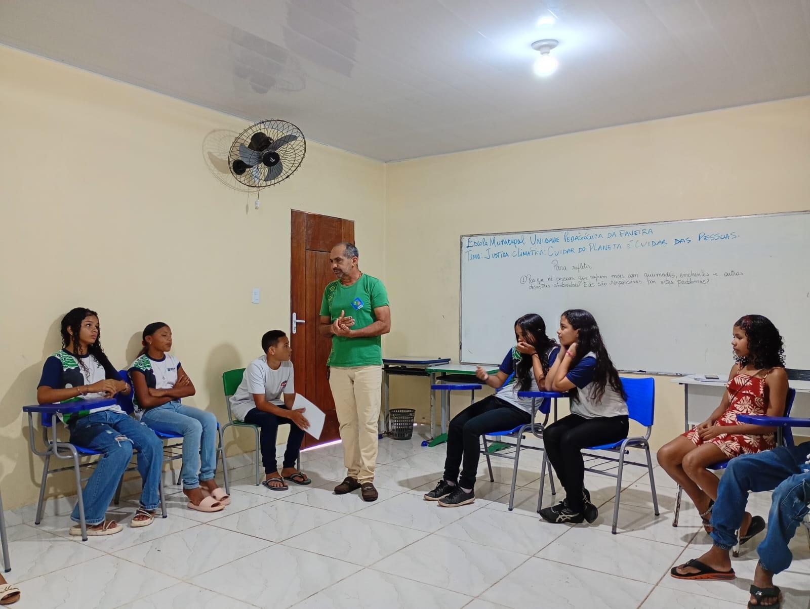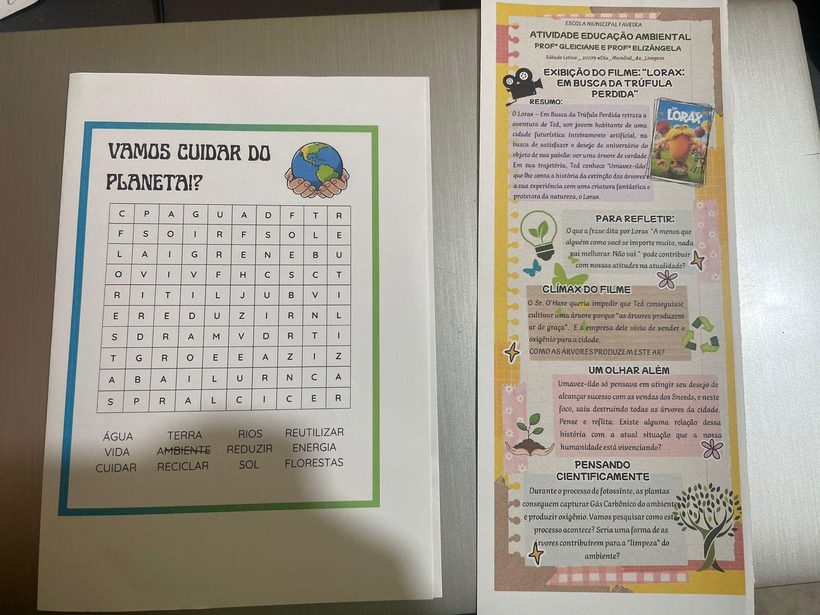 A equipe escolar dividiu as turmas do 6º ano a 9º ano. O 6º ano ficou na constituição de jogos com resíduos solidos, o 7º ano roda de conversa sobre justiça climatica e cidadania a importância da educação ambiental no cotidiano do aluno, 8º ano filme e roda de conversa sobre educação ambiental, 9º ano oficina de fotografia sobre dimensão dos resíduos.