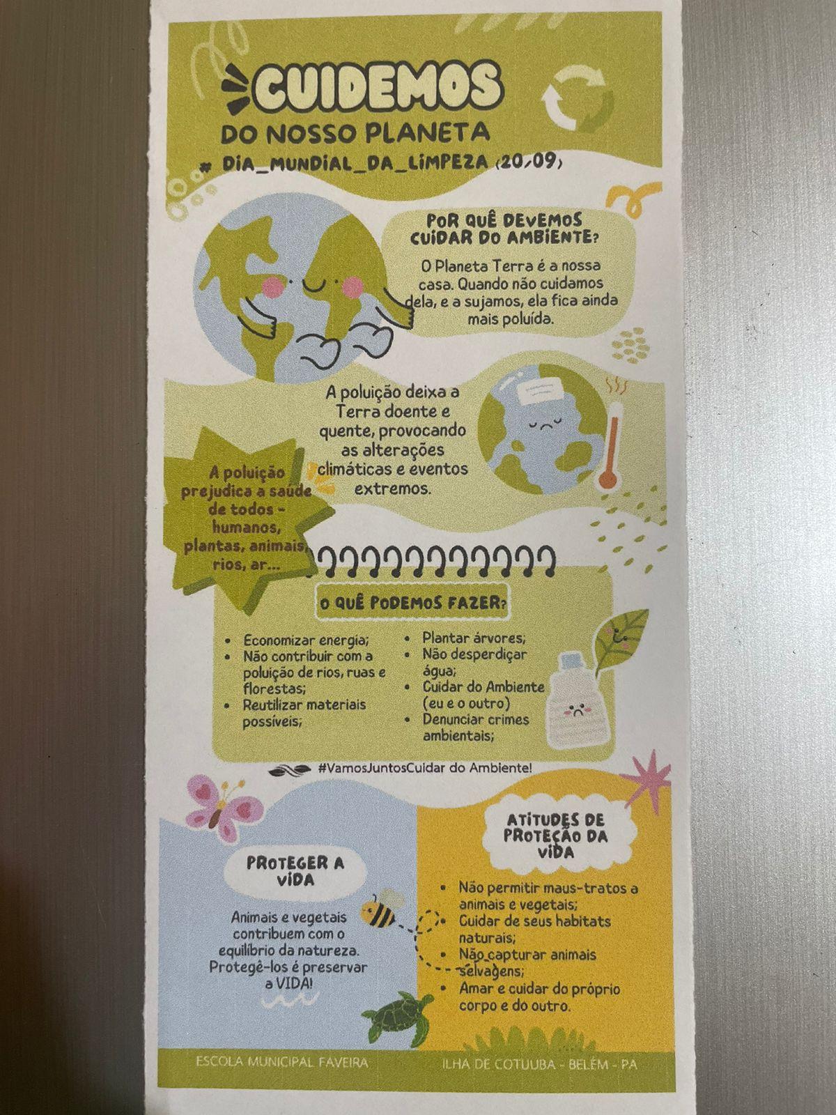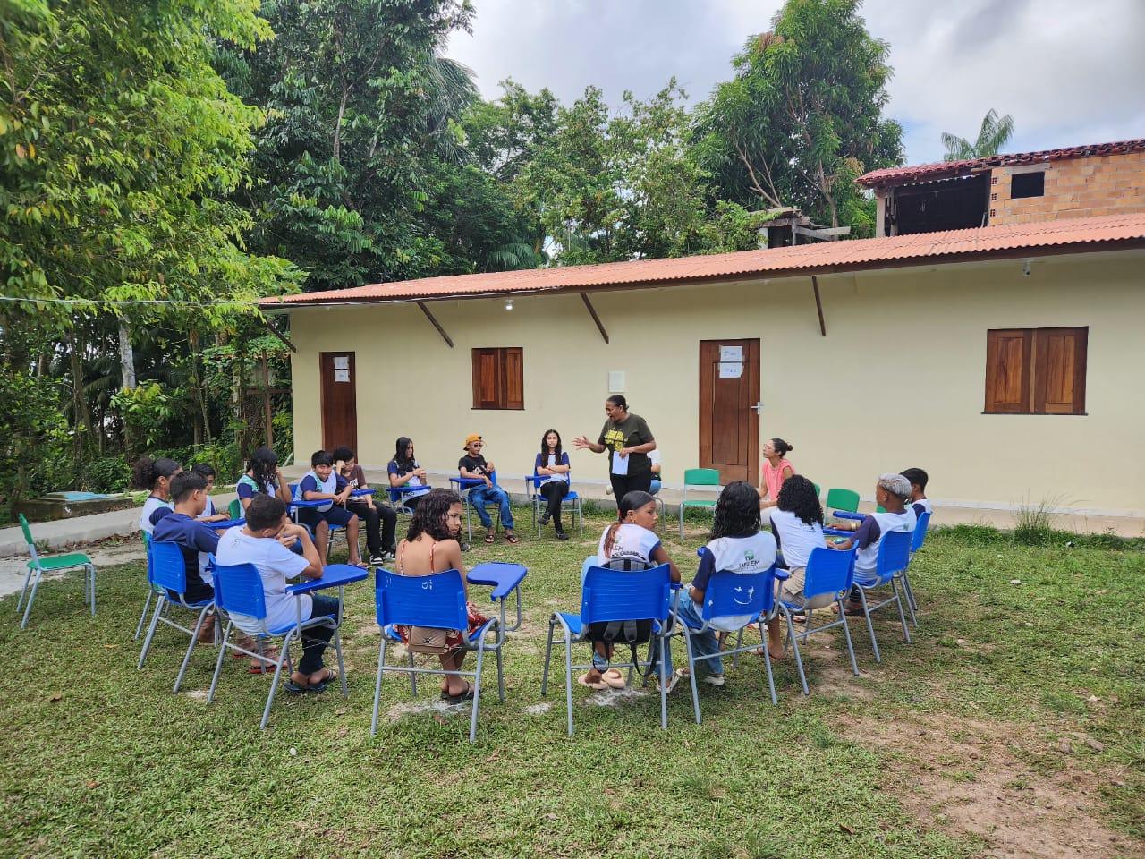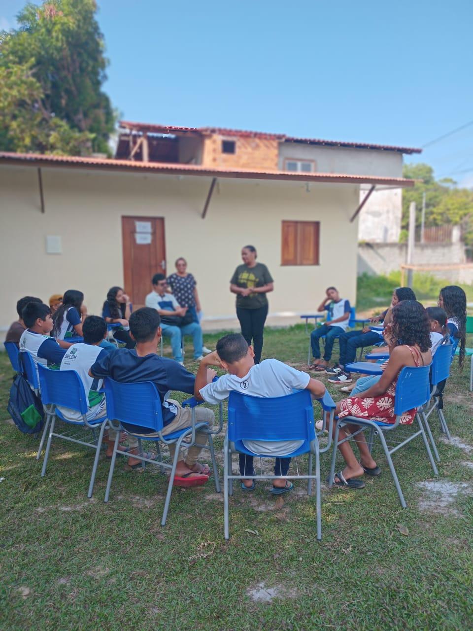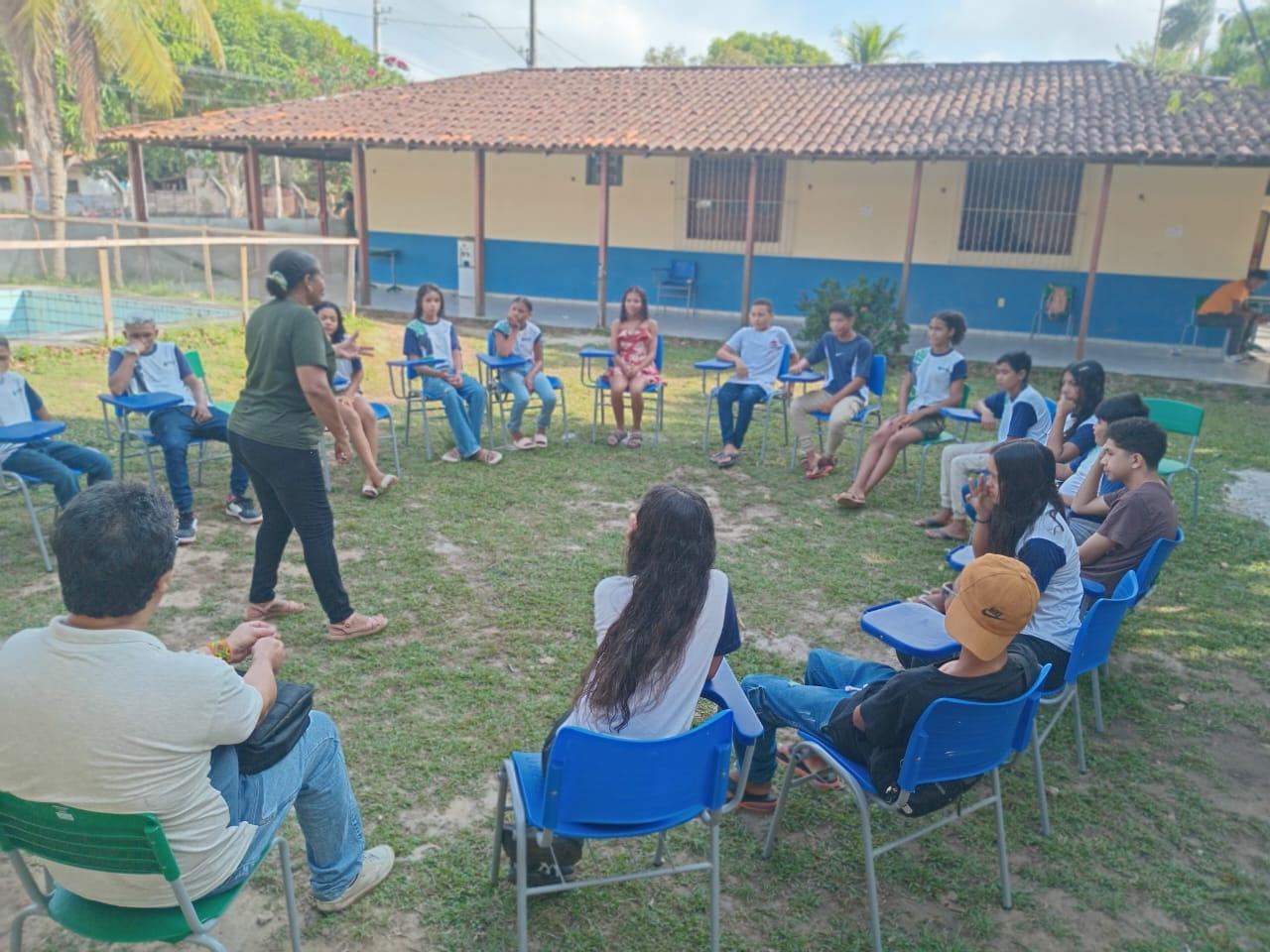 A equipe escolar dividiu as turmas do 6º ano a 9º ano. O 6º ano ficou na constituição de jogos com resíduos solidos, o 7º ano roda de conversa sobre justiça climatica e cidadania a importância da educação ambiental no cotidiano do aluno, 8º ano filme e roda de conversa sobre educação ambiental, 9º ano oficina de fotografia sobre dimensão dos resíduos.